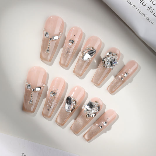 卓詩美【薔薇の恋】純手作りで甲シャンパン色の猫眼ネイルを着て白い百合高級