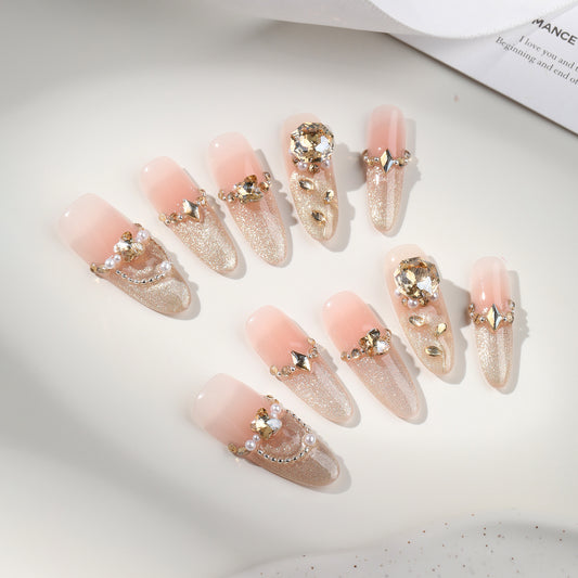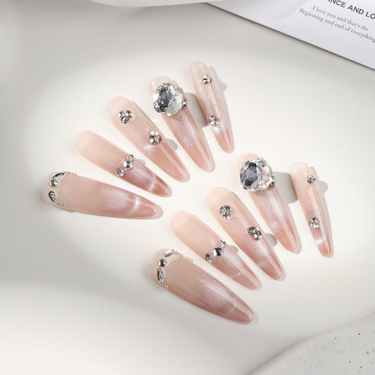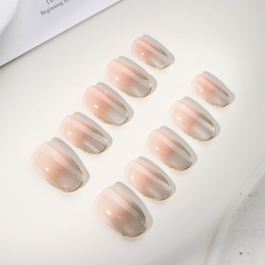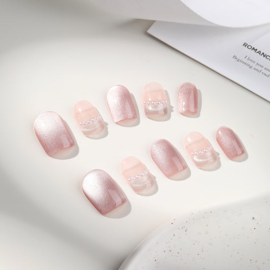 新しい手作りの服を着ているフレンチチークキャッツアイネイル気質白くて優しいinsネイルパッチ超仙人