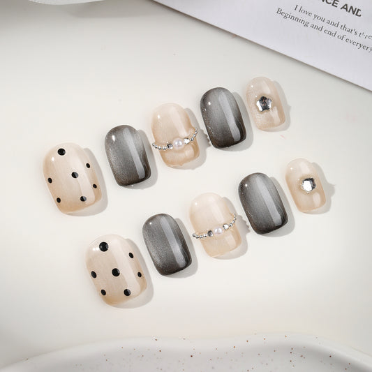 卓詩美純手作りショート高級ネイルアート波点軽奢白服装甲猫眼新しいネイルシール