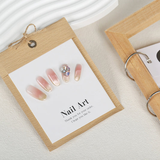 卓詩美軽奢白フレンチ純手作り甲頬紅高級猫眼ネイル純欲爪パッチ