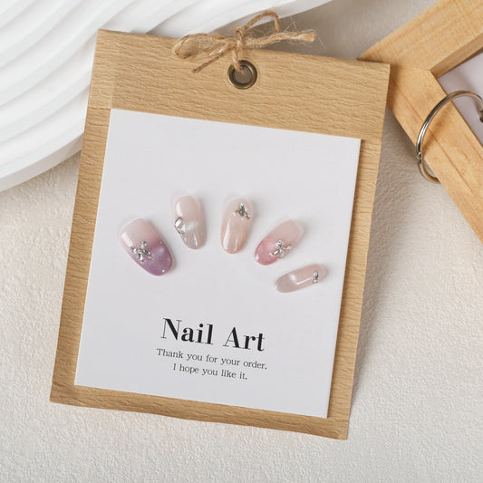 高級フレンチ七彩猫眼純手作り甲ドーパミン色月光蝶気質白ネイルパッチ